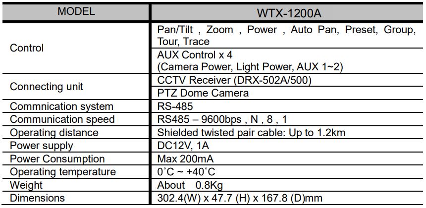 • Maximum up to 255 Units CCTV receiver and camera control